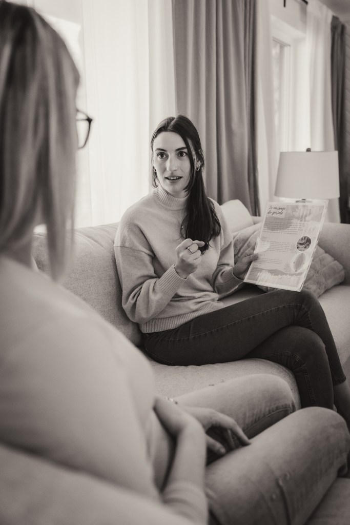 Cette rencontre est une discussion concrète sur votre accouchement et son déroulement. Tout d’abord, les différentes phases de l’accouchement seront décrites afin de déceler l’arrivée du vrai travail. Quels sont les signes ? Ensuite , la fameuse boîte à outil pour la gestion de la douleur. Comment gérer et quelle technique utiliser afin de mieux surfer la vague de chaque contraction durant votre accouchement. Ensemble, nous allons discuter des diverses positions pour l’avancement du travail , les techniques d’acupression pour votre partenaire ainsi que les hormones essentielles associées à l’accouchement.